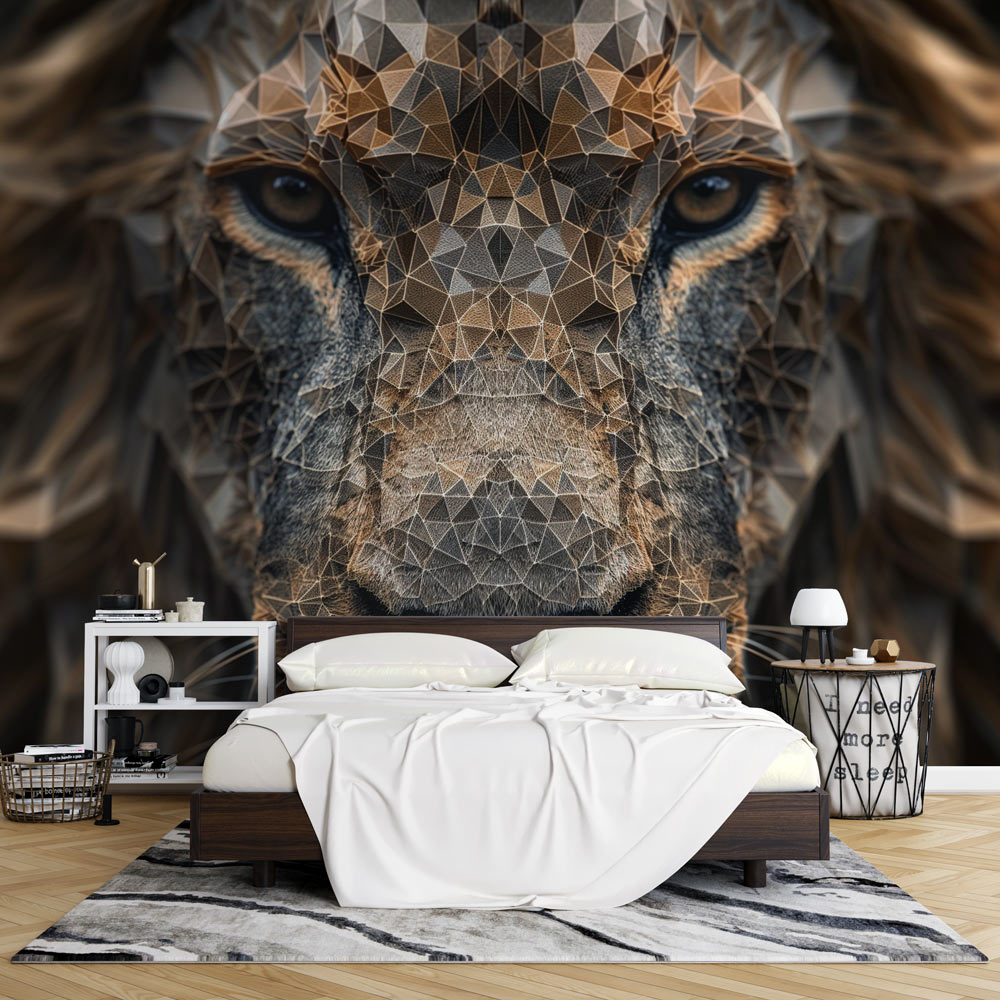 Ce papier peint lion géométrique apporte la beauté sauvage à la maison.