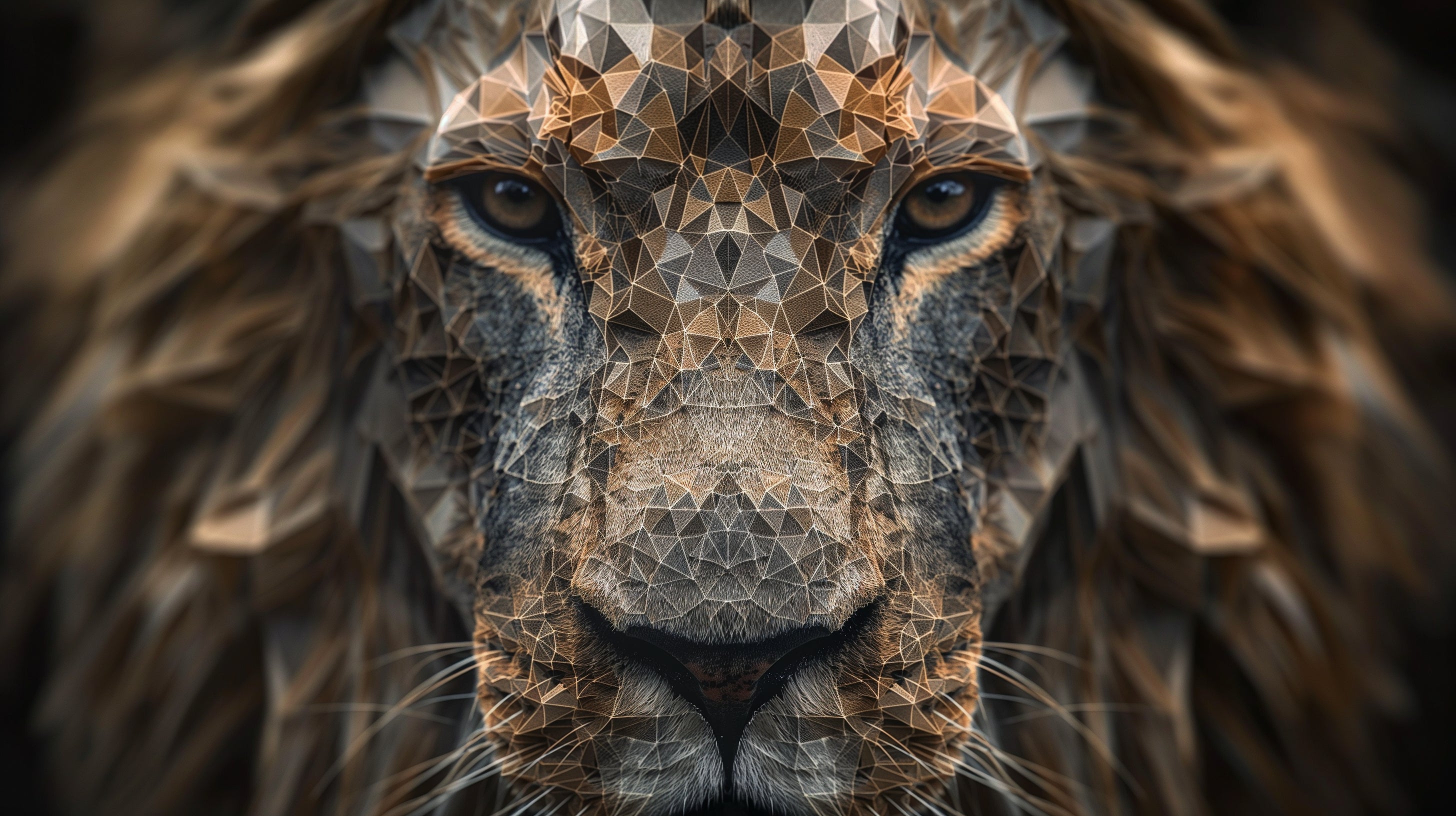 Ce papier peint lion géométrique présente une fusion magistrale d'innovation artistique et de majesté naturelle. Le regard perçant du lion émerge à travers un réseau complexe de facettes triangulaires, créant un jeu saisissant de tons bronze, gris et noir. Chaque polygone est méticuleusement conçu pour capturer la puissance brute et la noblesse de ce papier peint mural grand félin, tandis que le motif géométrique cristallin ajoute une touche contemporaine au thème classique de la faune.