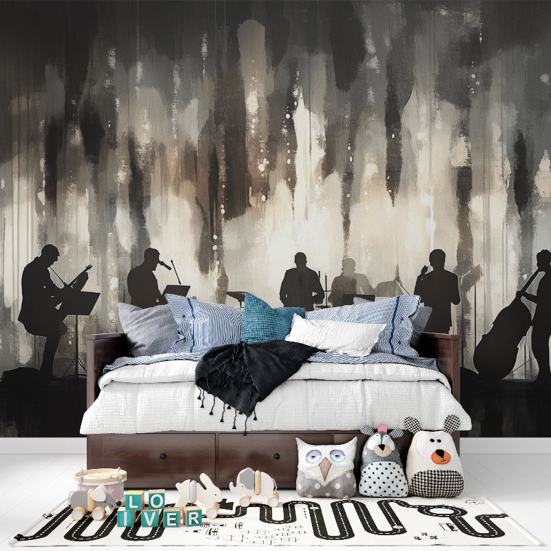 Le papier peint groupe de jazz transforme les murs vides en sujets de conversation.