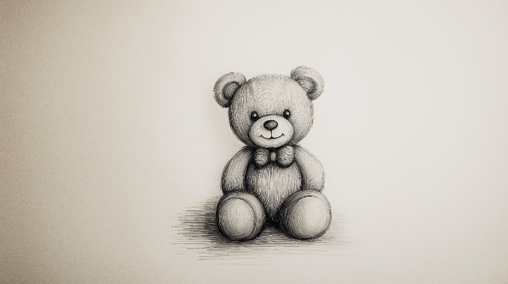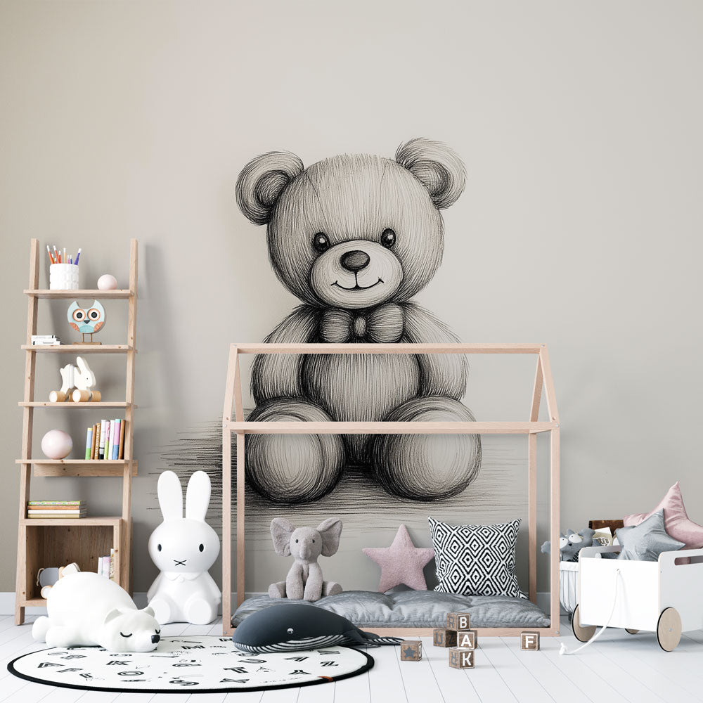 Papier Peint Mural Ours en Peluche | Charmant Croquis Noir et Blanc