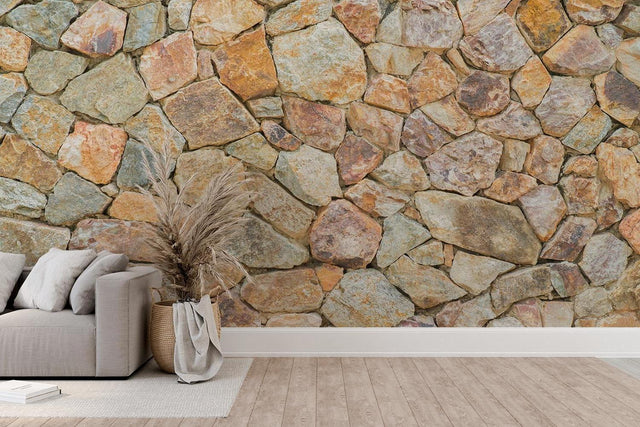 La fresque murale effet pierre aux tons multiples s'harmonise avec toutes les palettes de couleurs.