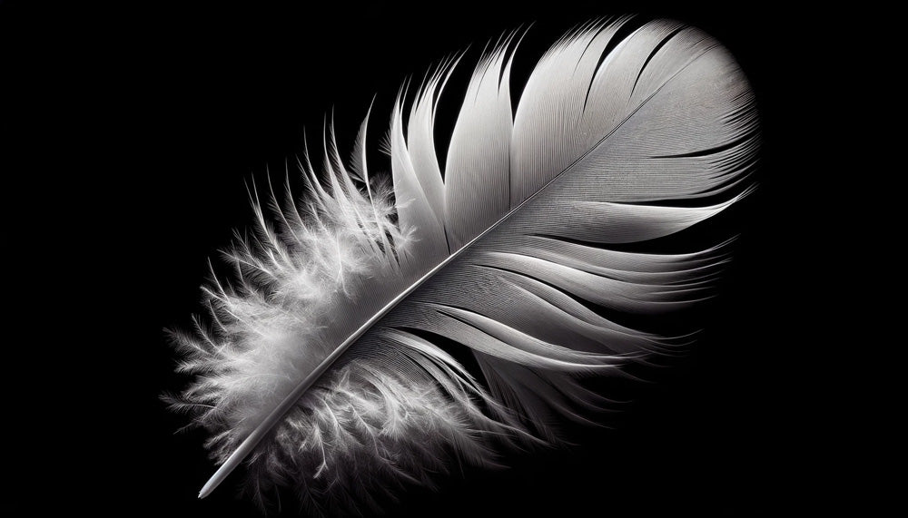 Ce papier peint à plumes noir et blanc met en valeur l'art de la nature à travers une photographie macro saisissante d'une seule plume sur un fond noir profond. Les détails complexes capturent chaque barbillon et filament délicat en blanc immaculé, créant un contraste éthéré qui attire le regard. La fresque murale monochrome à plumes révèle la géométrie parfaite de la nature et sa texture raffinée, transformées en une déclaration artistique audacieuse.