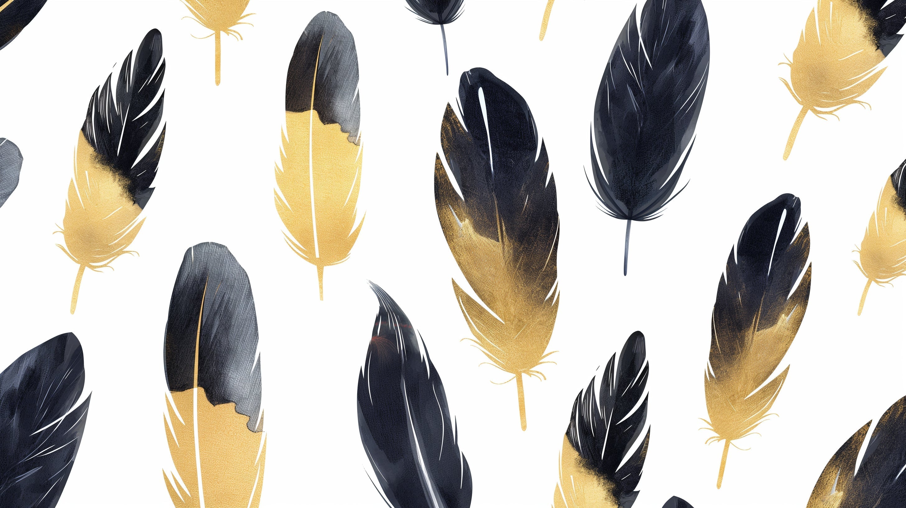 Cette fresque murale à plumes saisissante présente une danse artistique de plumes surdimensionnées dans une palette sophistiquée de noir et or. Chaque papier peint plume moderne affiche des plumes méticuleusement détaillées flottant gracieusement sur un fond blanc net, certaines rendues en tons noir profond tandis que d'autres scintillent avec des dégradés métalliques dorés, créant un jeu fascinant de lumière et d'ombre.