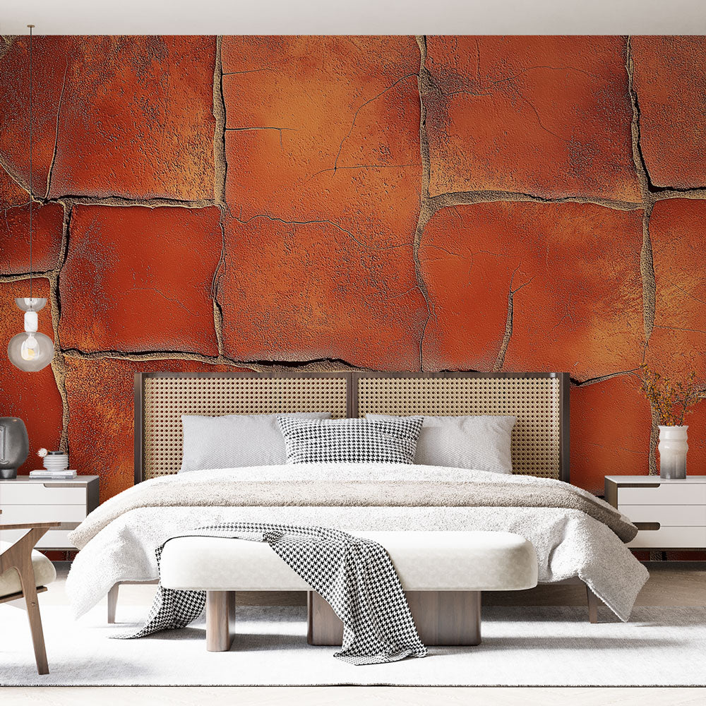Papier Peint Mural Terracotta | Design Rustique en Pierre Fissurée