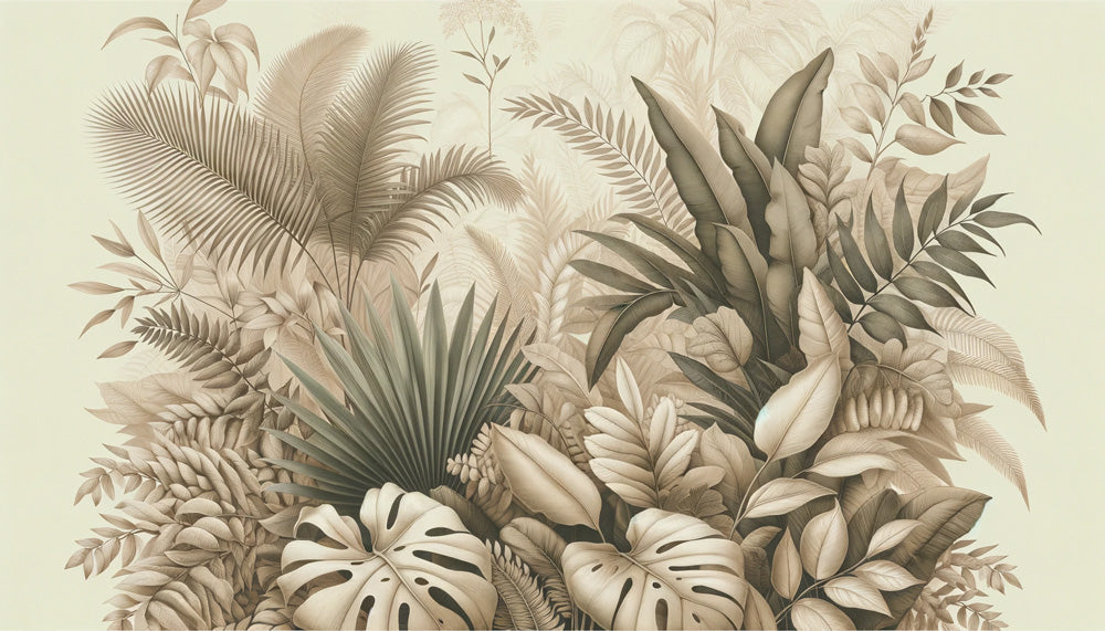 Papier Peint Mural Tropical | Design Palmier Beige et Monstera