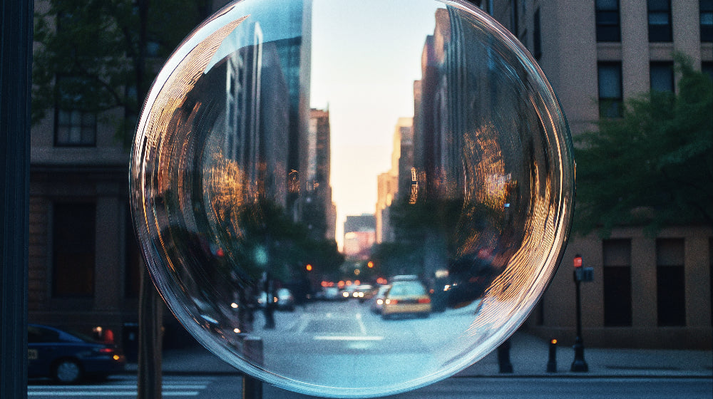 Papier Peint Mural Urbain | Réflexion Sphérique de la Ville au Coucher du Soleil