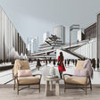Cette fresque murale d'architecture japonaise crée une ambiance urbaine cool dans les espaces de vie.