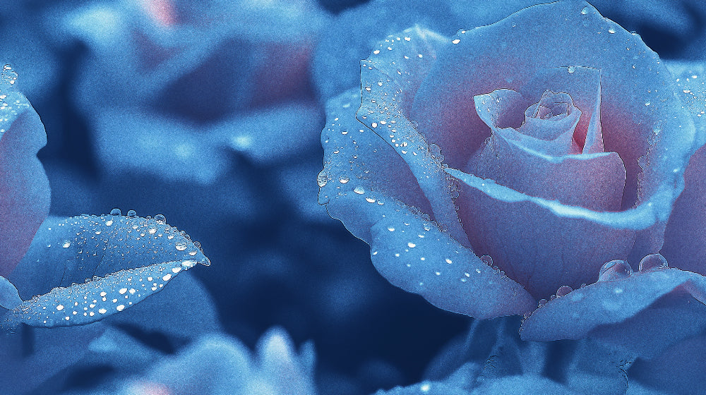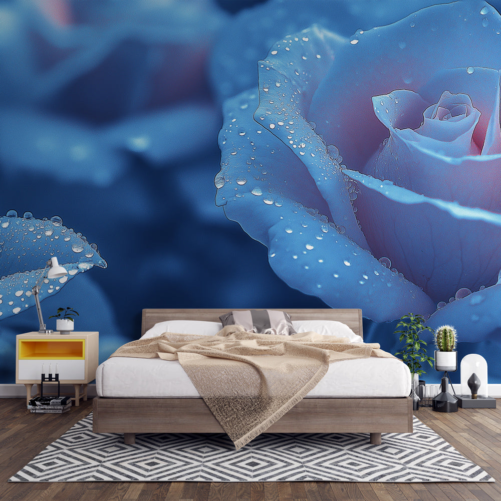 Papier Peint Mural Floral | Rose Bleue avec Rosée du Matin