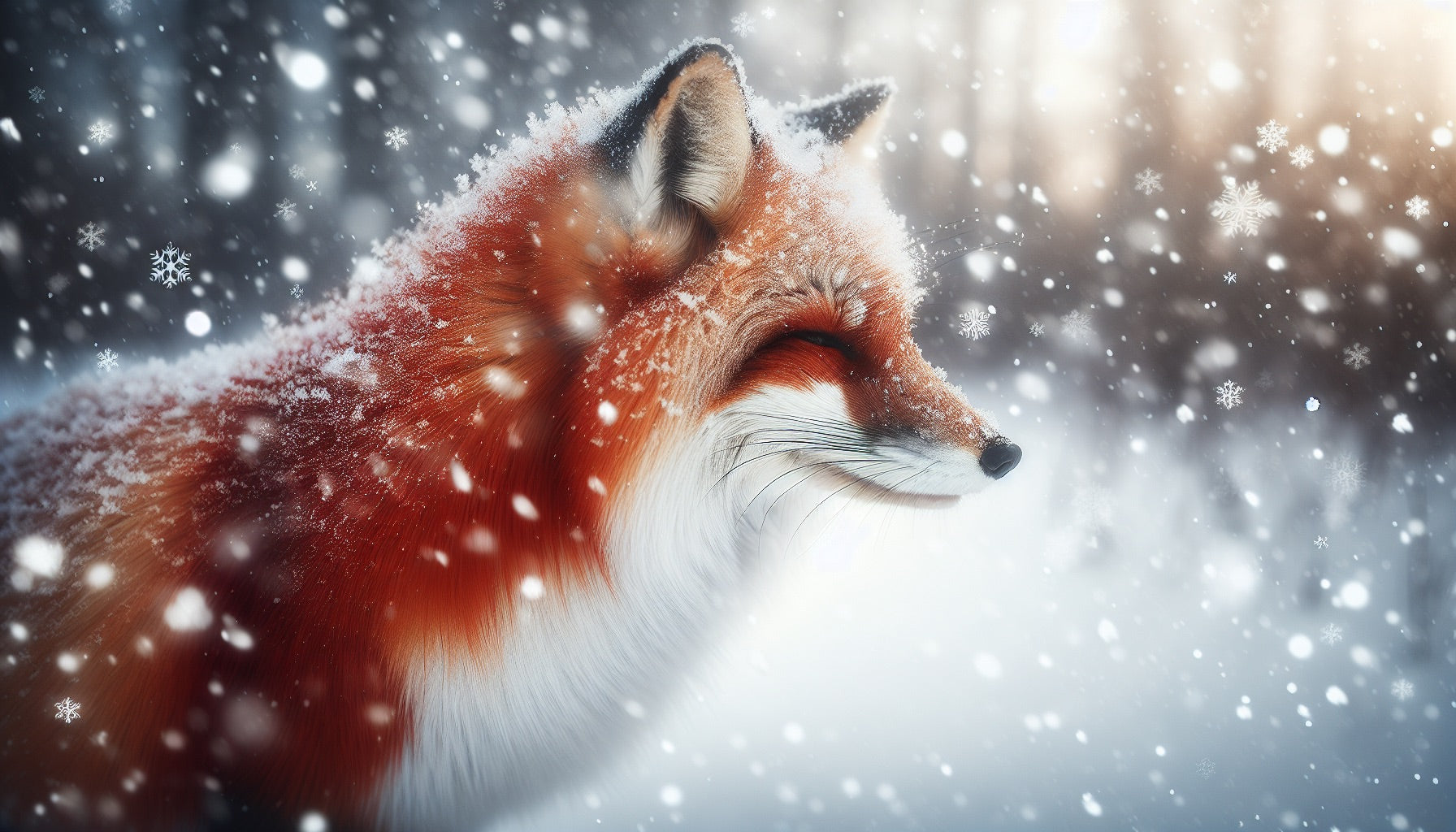 Ce papier peint renard de la forêt enchanteur capture un moment magique d'hiver, mettant en scène un renard roux en repos serein au milieu de flocons de neige tombant doucement. Le contraste saisissant entre le pelage rouille du renard et le décor hivernal brumeux crée un point focal captivant, tandis que les flocons délicats et les formations cristallines ajoutent une qualité éthérée à ce papier peint animalier d'hiver. Le mélange magistral de tons chauds et froids apporte profondeur et dimension à la composition artistique.
