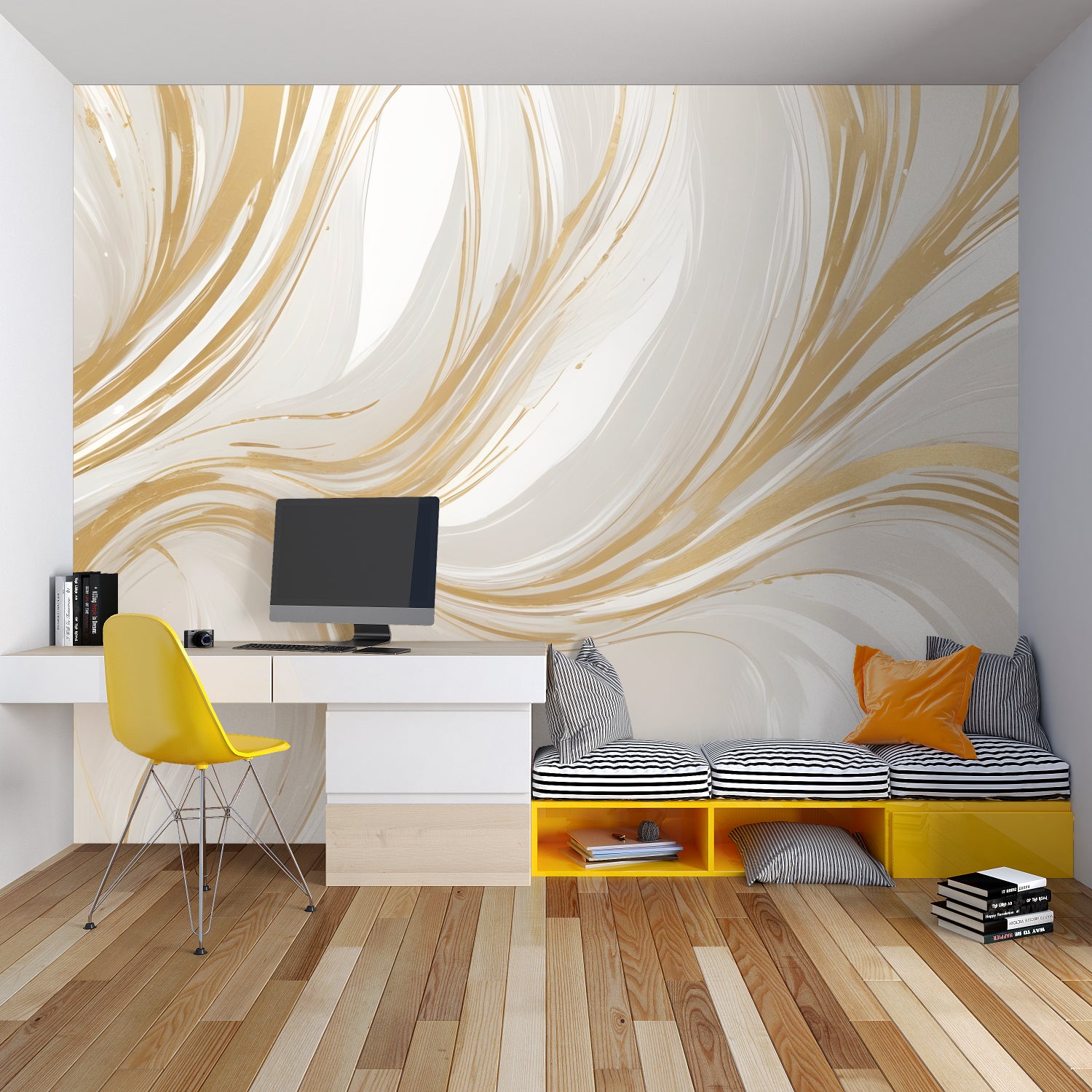 Notre papier peint abstrait doré apporte instantanément du style aux pièces.
