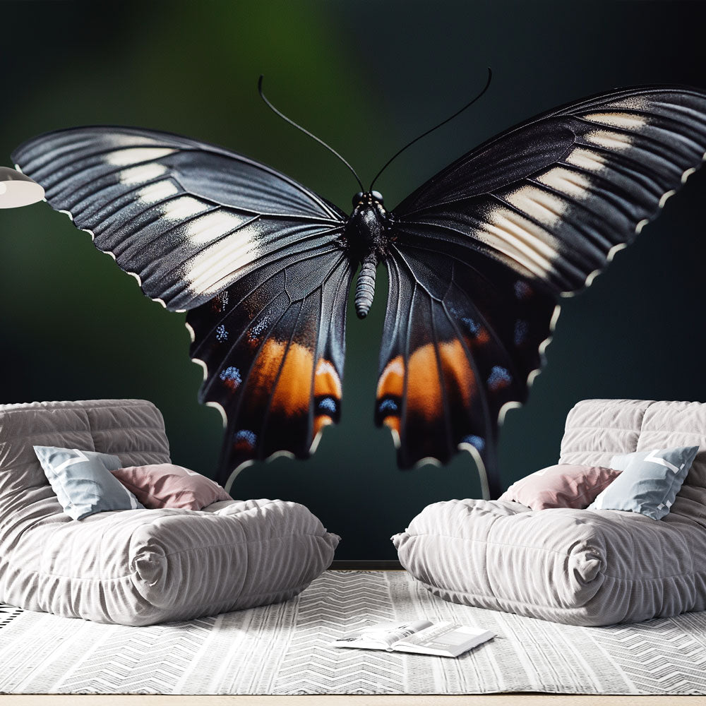 Papier Peint Mural Papillon | Photo Macro d'Ailes Noires et Oranges
