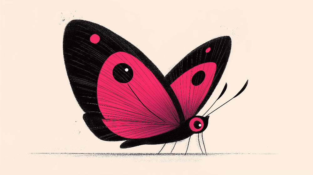 Cette fresque murale papillon présente une interprétation artistique saisissante dans un style minimaliste. Le design à grande échelle met en scène un papillon gracieux rendu en rose vif et noir profond, créant une déclaration visuelle puissante. Le travail délicat des lignes et les détails réfléchis, des fines stries sur les ailes aux points subtils, démontrent une art moderne du papier peint insecte sophistiqué sur un fond beige doux.