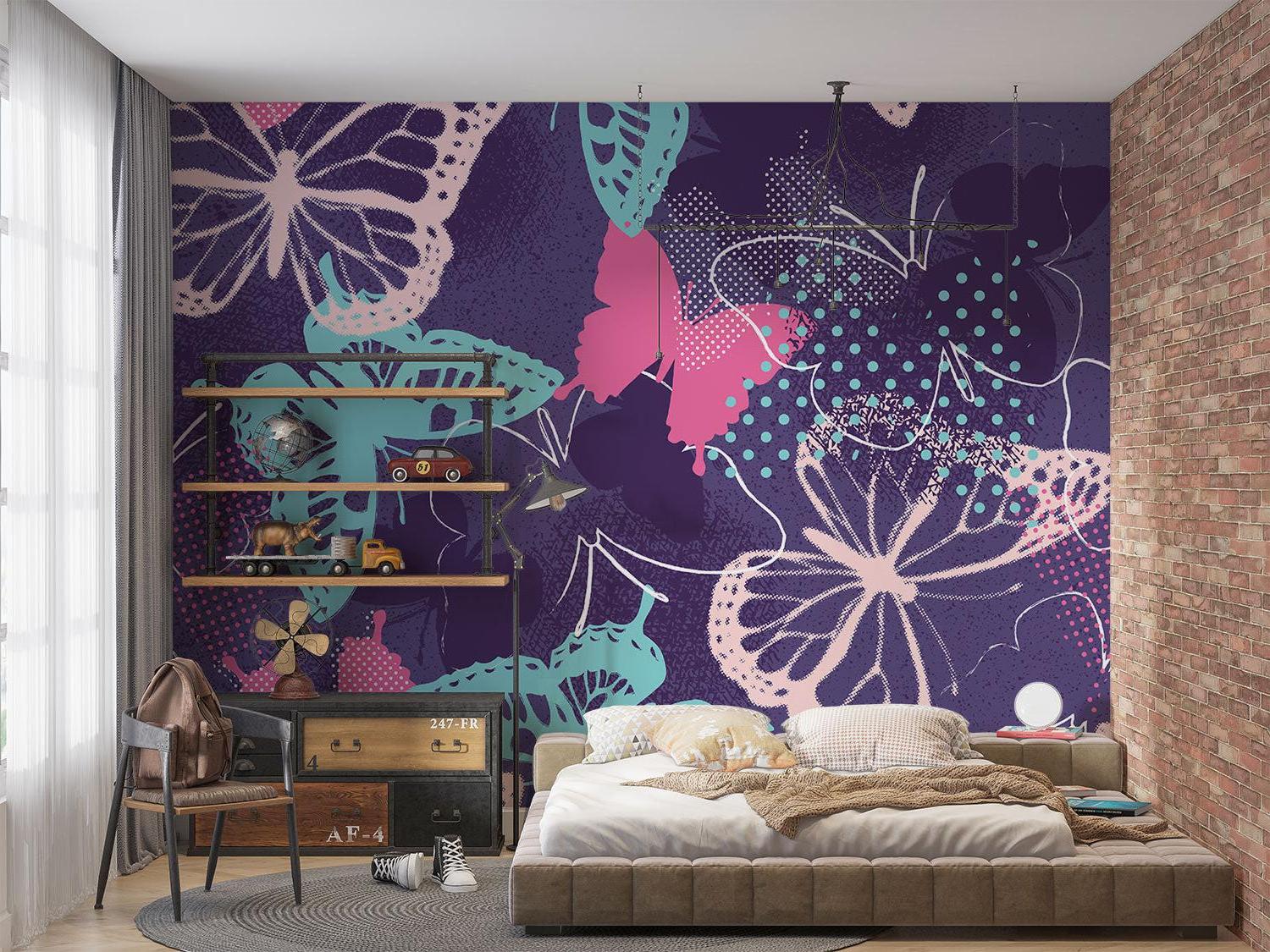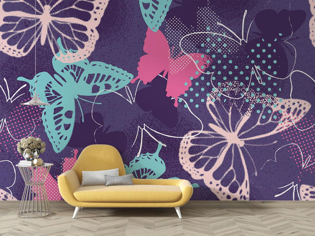 Papier Peint Mural Papillon | Design Moderne Violet et Turquoise