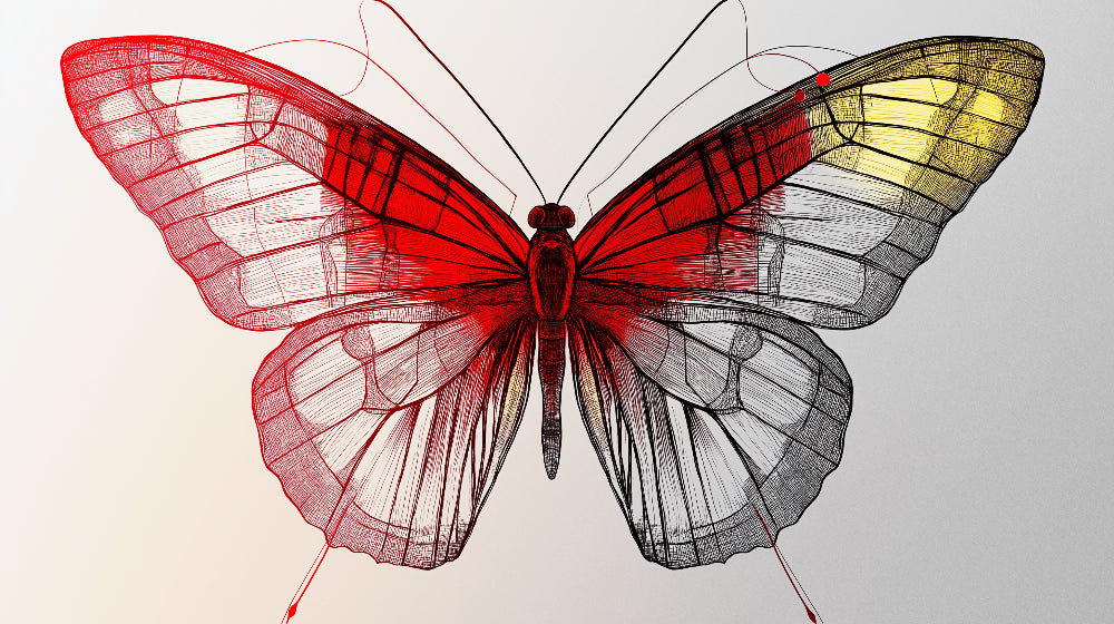 Papier Peint Mural Papillon | Design Linéaire Rouge