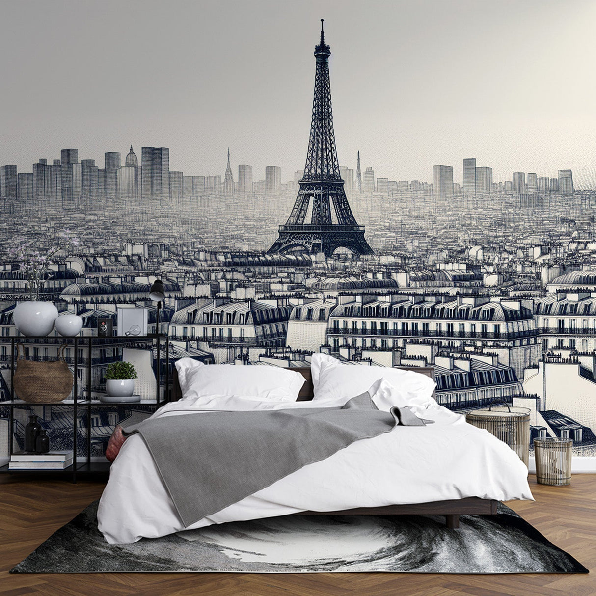 Ce papier peint Paris en noir et blanc rend votre pièce inoubliable.