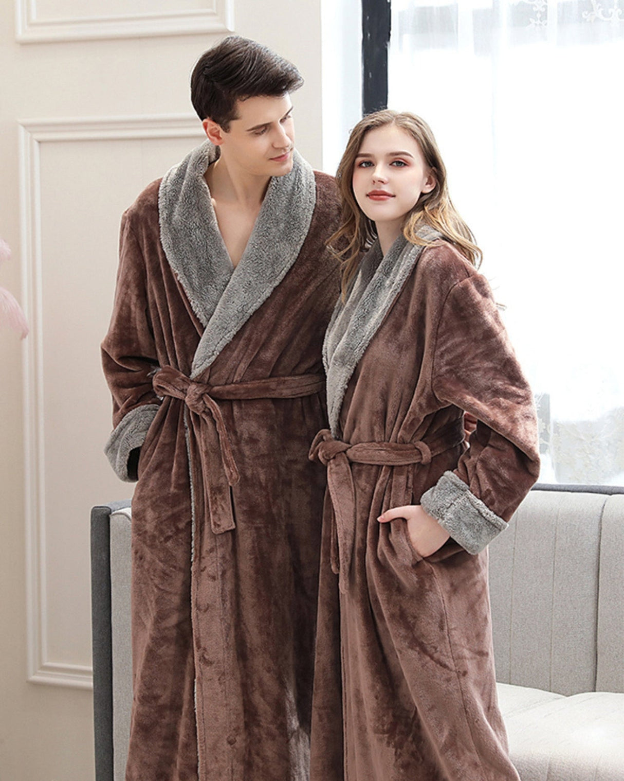 Peignoir Couple en Peluche | Peignoir Long Doublé Sherpa