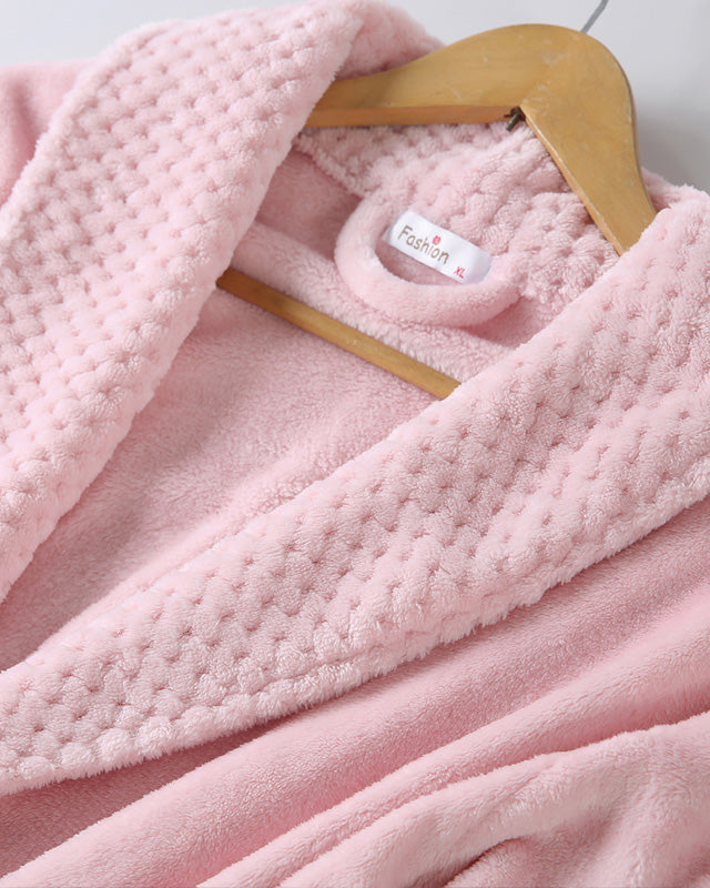 Peignoir en polaire douce | Tenue d'intérieur rose pour femme, longueur complète