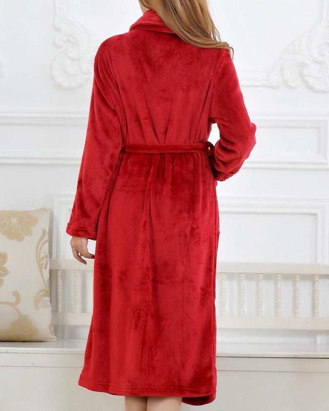 Peignoir long en peluche | Polaire rouge luxueuse avec ceinture