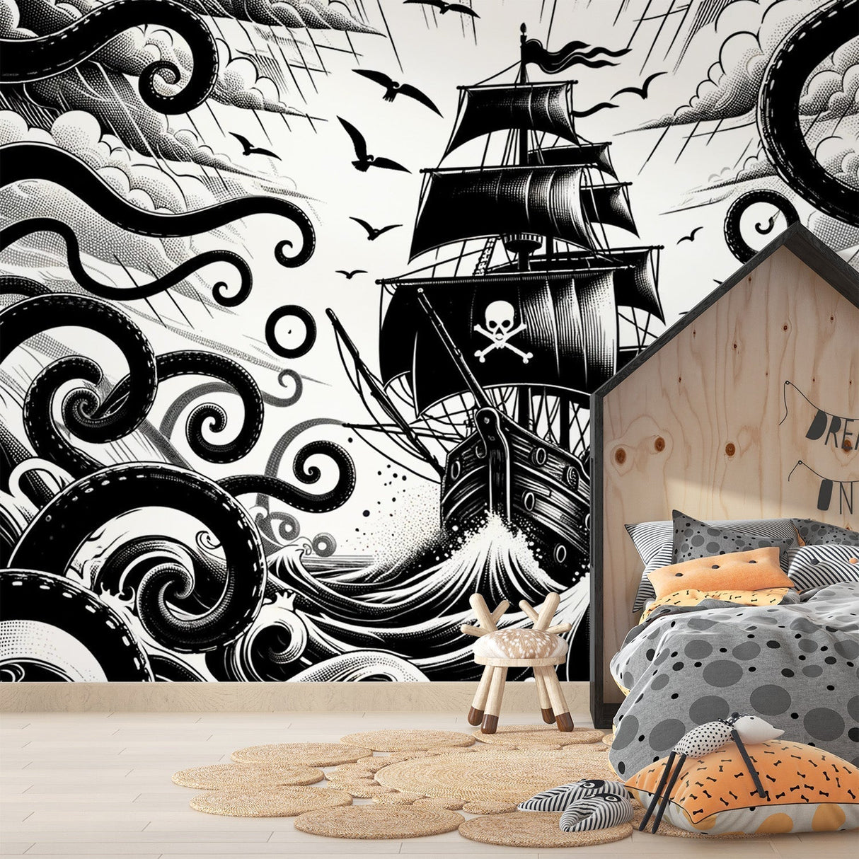 Cette fresque de bateau pirate transforme les pièces en aventures passionnantes.