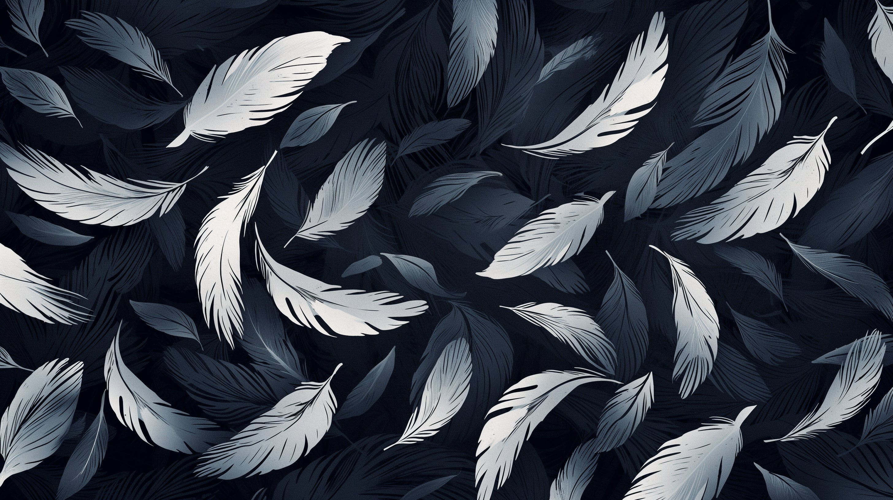 Cette fresque murale de plumes sophistiquée crée un affichage fascinant de plumes flottant gracieusement sur un fond bleu marine profond. L'interaction délicate des plumes blanches et grises apporte une qualité éthérée au design, tandis que le fond sombre ajoute une profondeur dramatique. Chaque élément de papier peint à plumes flottantes est rendu avec un détail réaliste, capturant la nature douce et légère des plumes tombant en mouvement.