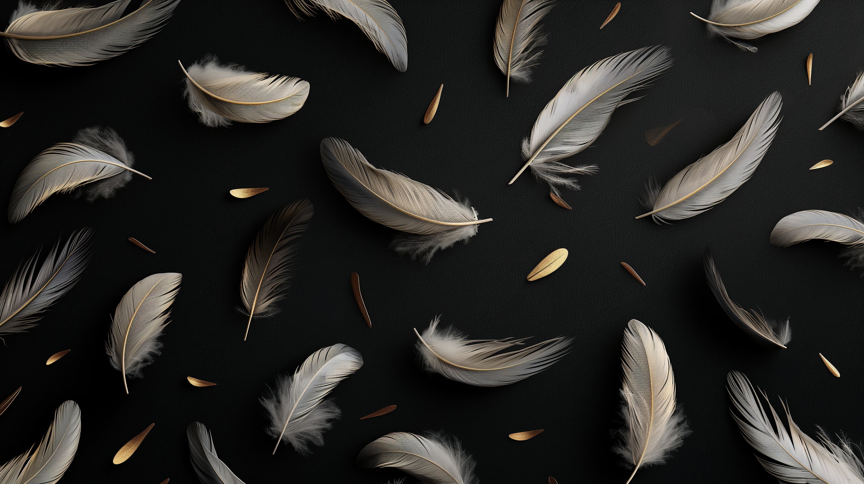 Ce papier peint plume élégant présente une danse fascinante de plumes légères sur un fond noir riche. Chaque plume délicate est rendue avec un détail exquis, avec des tons doux de blanc et de crème rehaussés par des accents dorés subtils. L'agencement flottant crée une sensation de mouvement doux, tandis que la fresque murale noire et dorée apporte profondeur et sophistication grâce à sa palette contrastée.