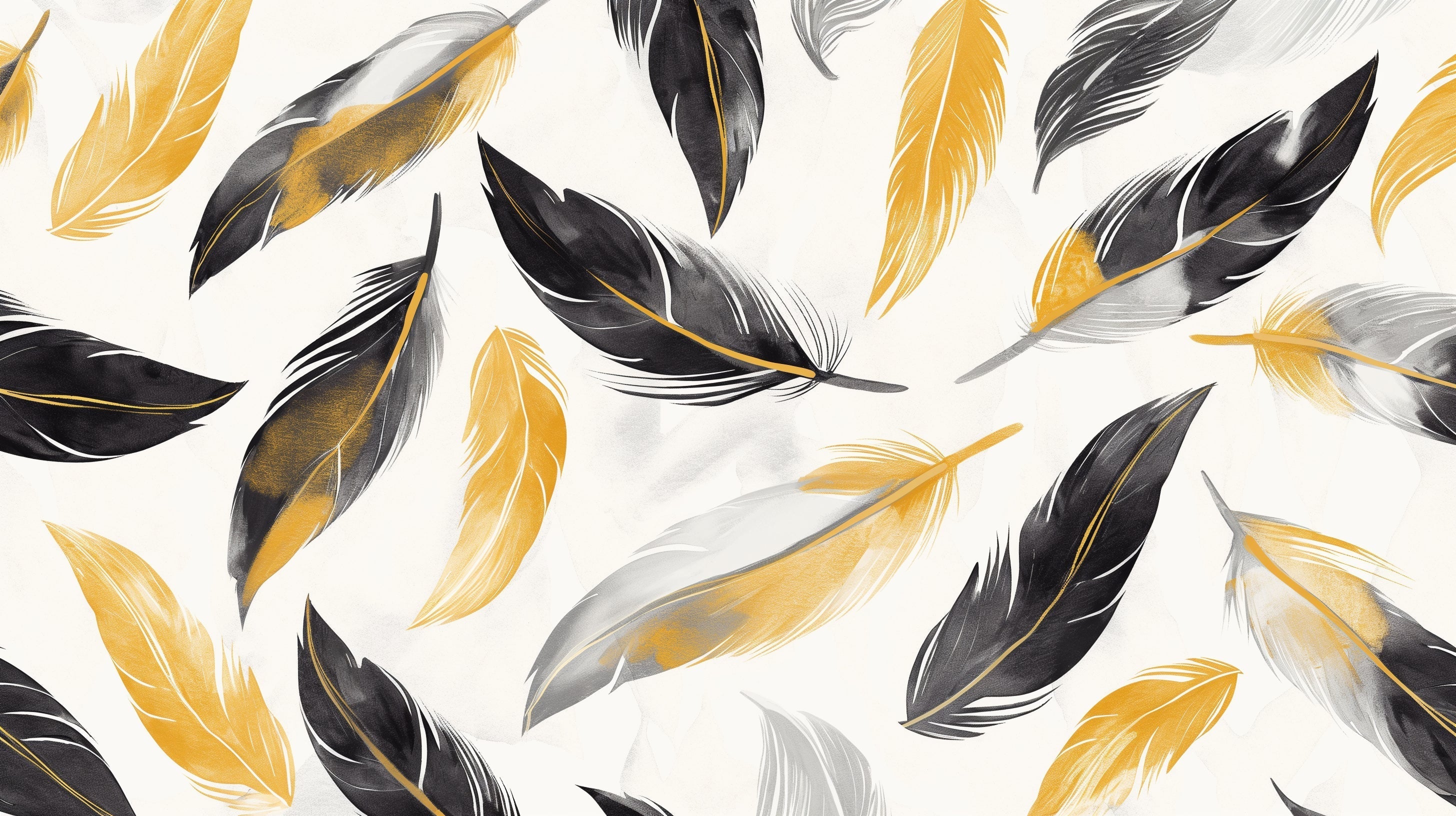 Cette peinture murale de plumes présente une danse artistique de plumes flottantes avec grâce sur un fond blanc net. Chaque plume est magistralement rendue dans une palette sophistiquée de noir profond, or brillant et tons gris subtils. Les détails délicats capturent la légèreté éthérée des plumes naturelles, tandis que le motif noir et or ajoute une touche contemporaine qui évoque le luxe moderne et le goût raffiné.