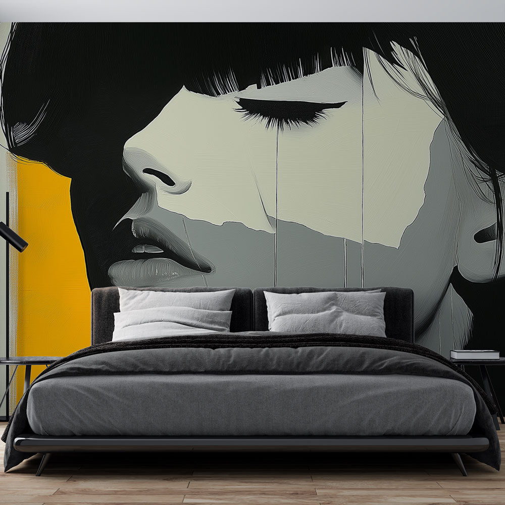 Papier Peint Mural Portrait | Art Monochrome Avec Accent Jaune