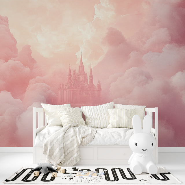 Papier Peint Mural Château de Princesse | Nuages Roses de Rêve Fantaisie
