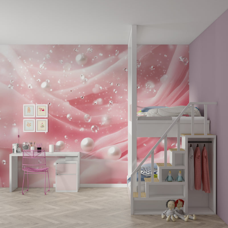 Papier Peint Mural Princesse | Design Soie Rose et Perles