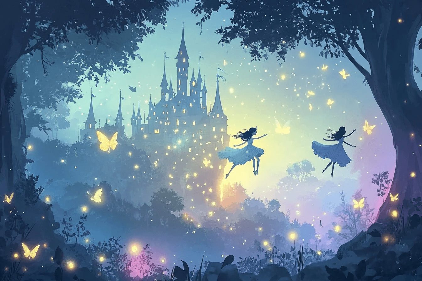 Papier Peint Mural Princesse | Château Enchanté avec Fées Dansantes