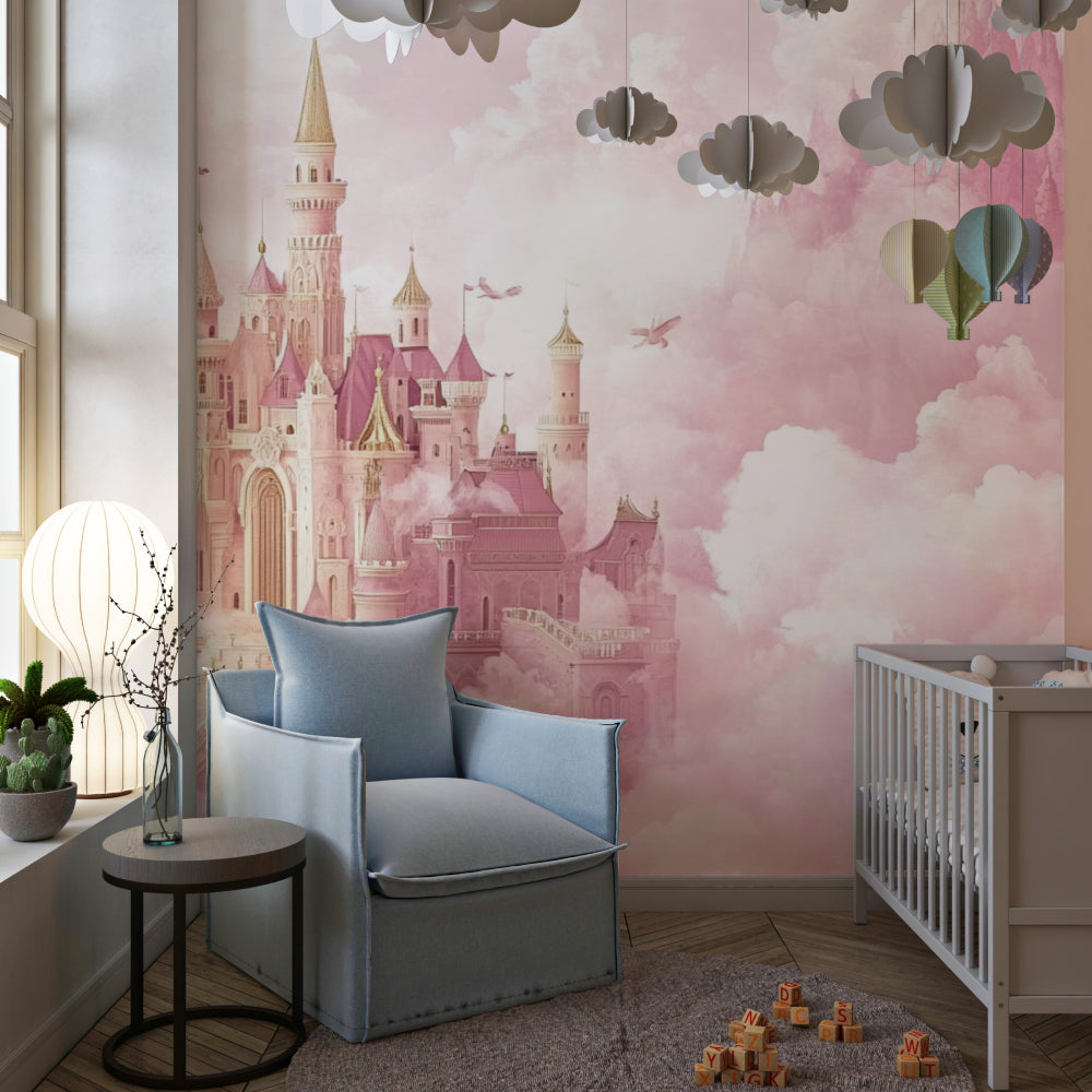 Cette fresque murale château de princesse transforme les pièces en rêves de contes.
