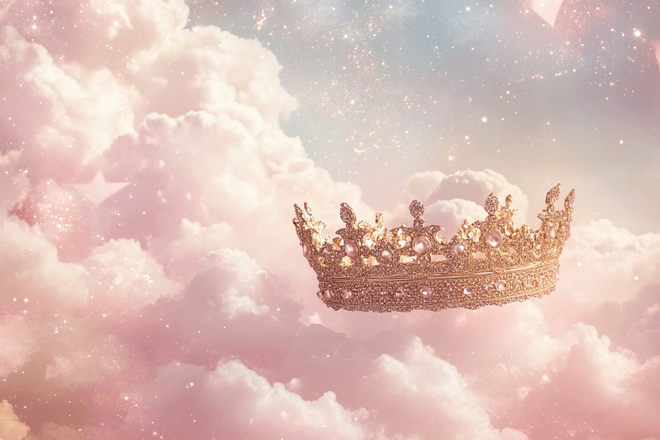 Papier Peint Mural Princesse | Couronne Or Rose avec Ciel Étincelant