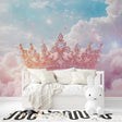 Cette fresque murale de couronne magique transforme les murs ordinaires en scènes de château enchanté.