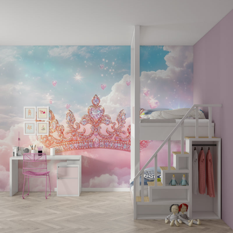Transformez n'importe quel espace en un sanctuaire royal avec ce papier peint thème princesse. Parfait pour créer une atmosphère enchanteresse, ce papier peint mural couronne allie élégance et fantaisie dans un design sophistiqué qui grandit avec votre enfant. La palette de couleurs douces et les éléments éthérés travaillent ensemble pour créer un espace qui inspire les rêves et nourrit l'imagination.