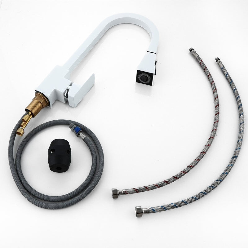 Robinet de cuisine moderne | Pulvérisateur escamotable blanc Design carré