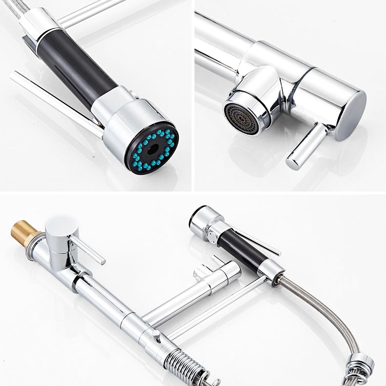 Ce robinet de cuisine professionnel avec pulvérisateur escamotable est la solution idéale pour les éviers à double bac. Le pulvérisateur rétractable propose deux modes : un jet standard économiseur d'eau et un jet haute pression parfait pour nettoyer efficacement fruits, légumes et vaisselle.