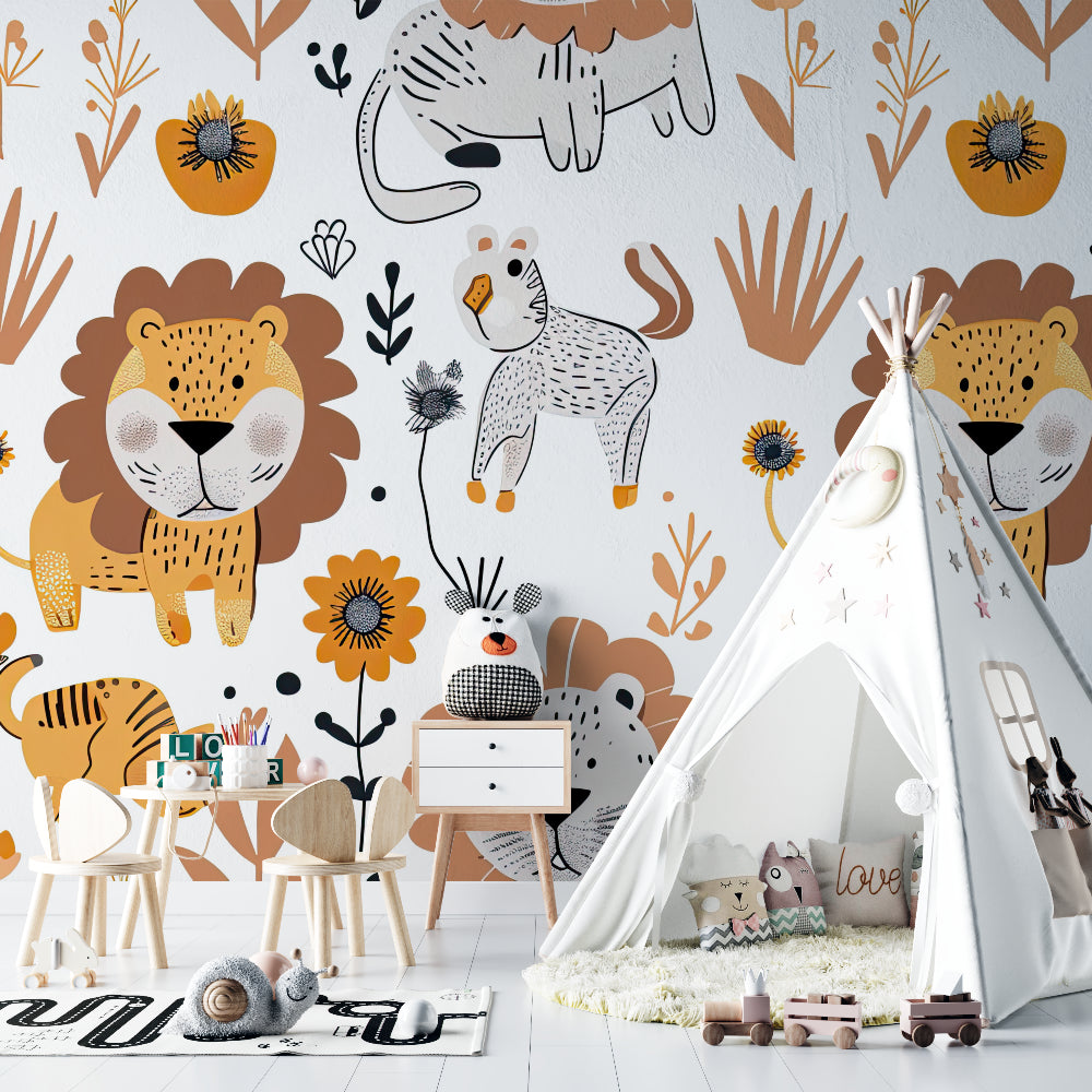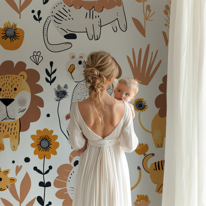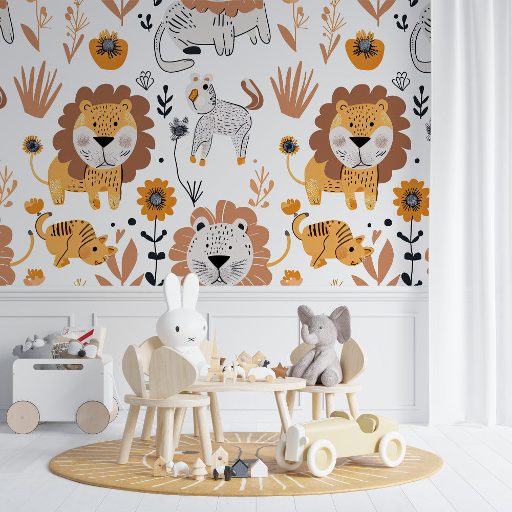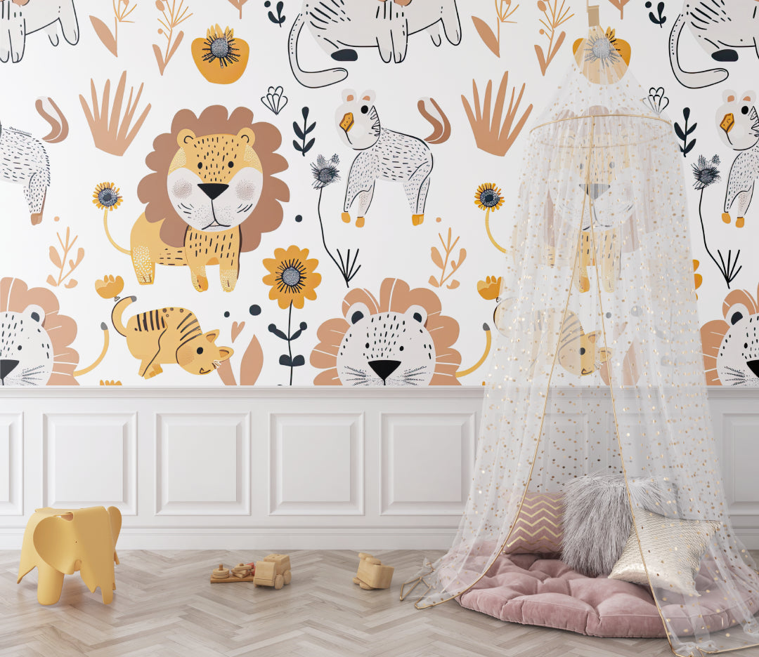 Transformez n'importe quel espace en un royaume magique avec ce papier peint lion pour enfants. Le mélange harmonieux de motifs floraux et de faune attachante crée une atmosphère de merveille et de joie, parfaite pour les chambres de bébé, les salles de jeux ou tout espace recherchant une touche de sophistication ludique. Ce papier peint animalier pour nurserie offre l'équilibre idéal entre charme décoratif et design contemporain, en faisant un choix polyvalent pour créer des environnements engageants qui grandissent avec votre enfant.