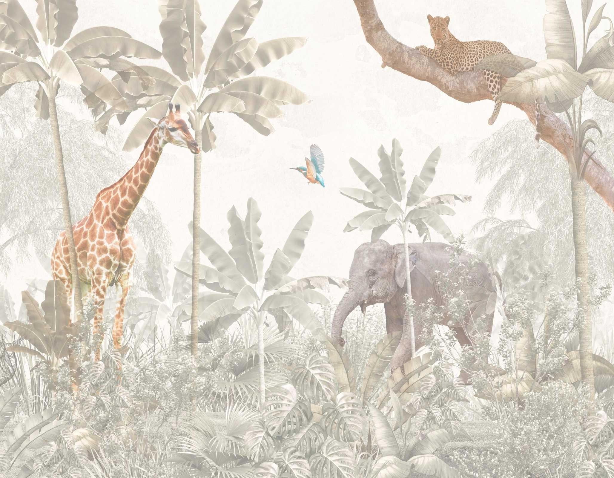Papier Peint Mural Safari | Scène de Jungle Beige Rêveuse