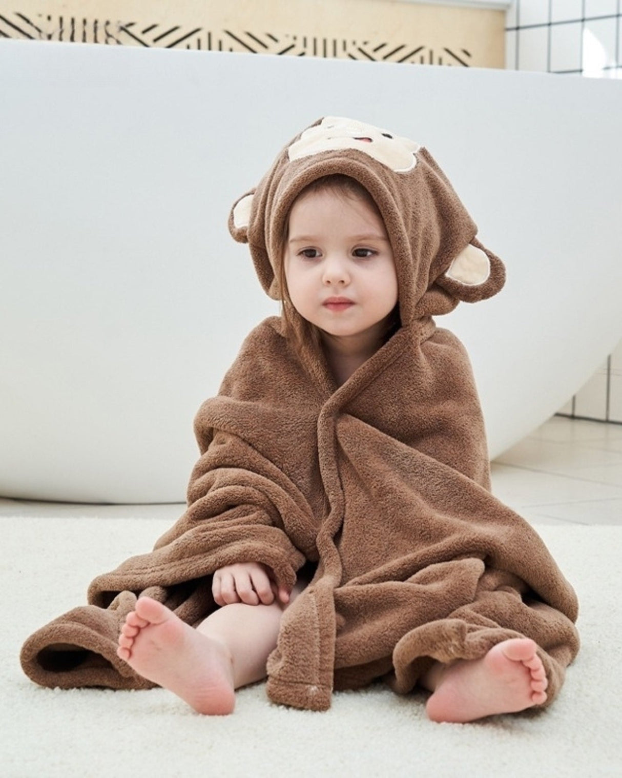 Serviette de bain à capuche pour enfants | Éponge en coton peluche motif singe