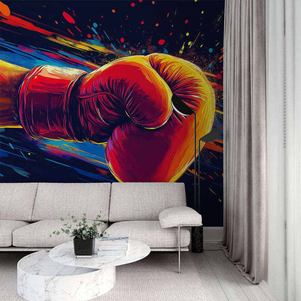 Papier Peint Mural Sportif | Gant de Boxe avec Éclaboussure de Couleur