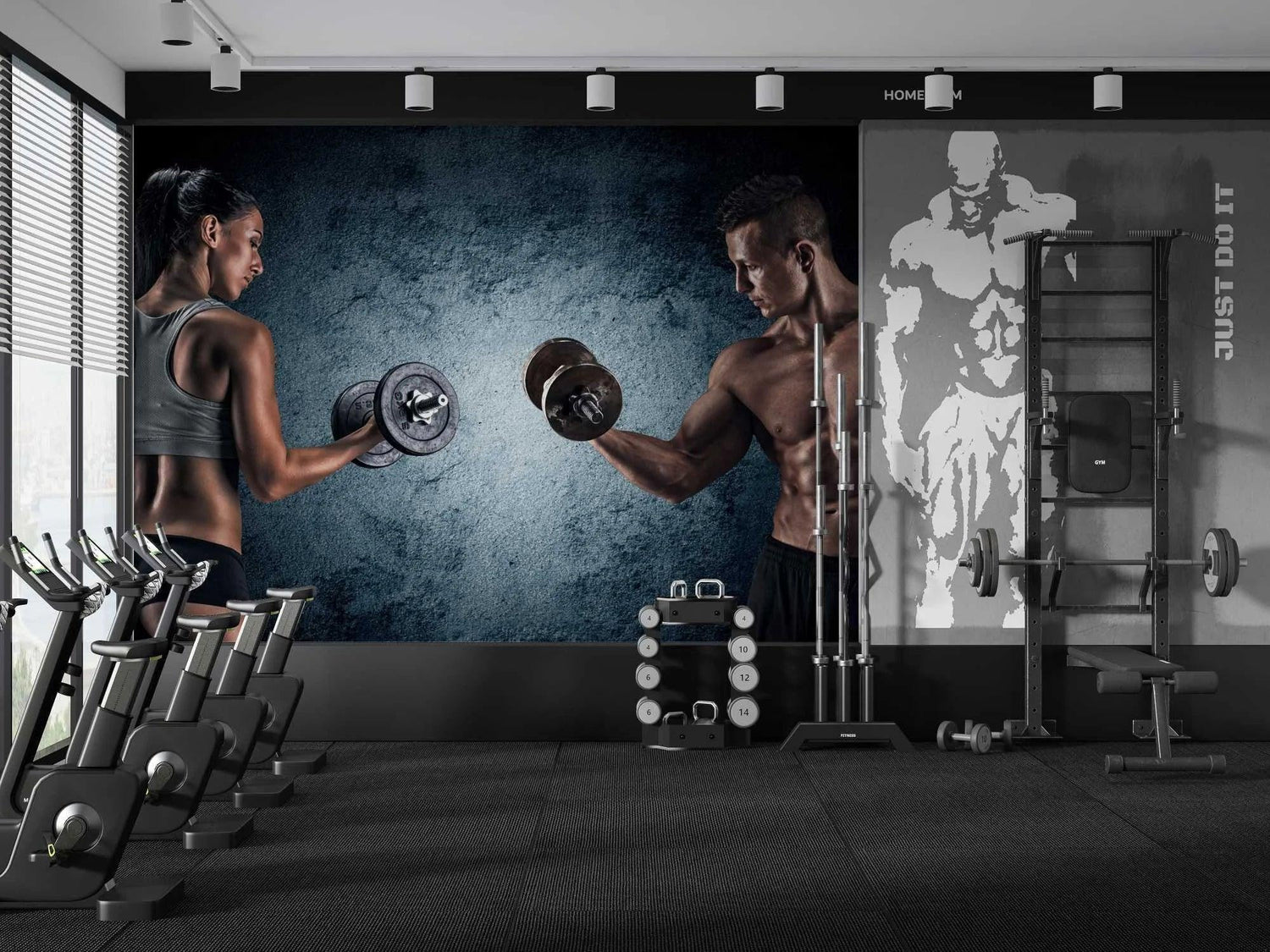 Ce papier peint fitness moderne apporte une touche professionnelle à tout espace d'entraînement.