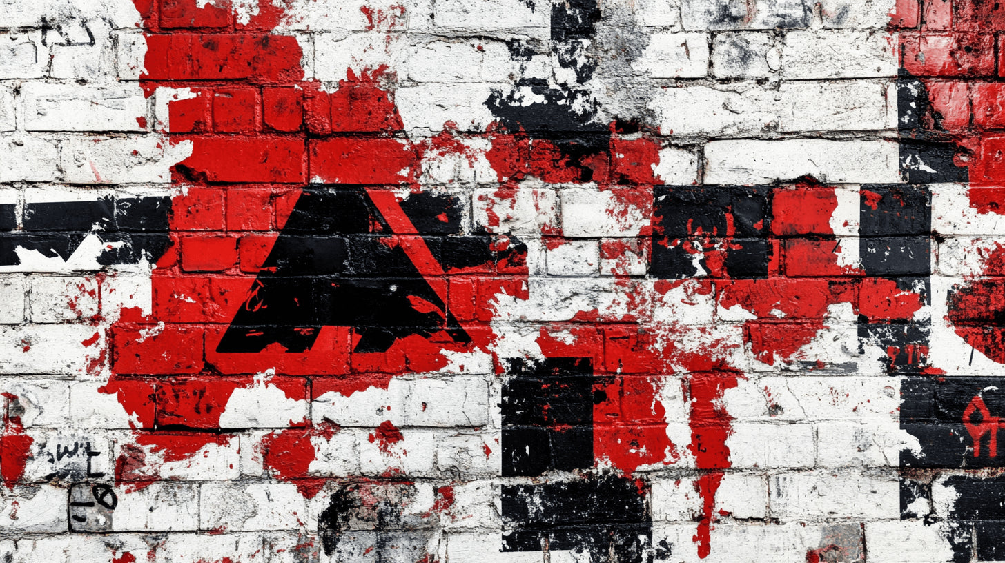 Ce papier peint graffiti urbain présente une expression artistique audacieuse à travers une composition dramatique de rouge, noir et blanc sur une toile en brique texturée. L'interaction dynamique des couleurs crée une esthétique brute et énergique avec des éclaboussures de rouge vif contre des formes géométriques noires nettes, tandis que les sections blanches usées ajoutent profondeur et authenticité à cette fresque murale d'art de rue. Le design évoque la culture urbaine contemporaine avec ses formes abstraites puissantes rappelant les mouvements modernes de l'art de rue.