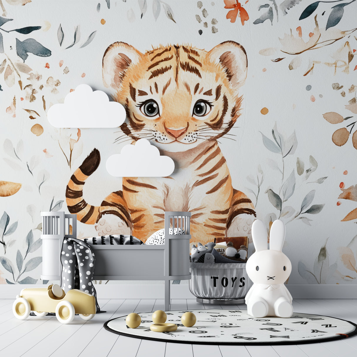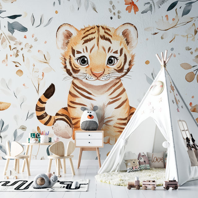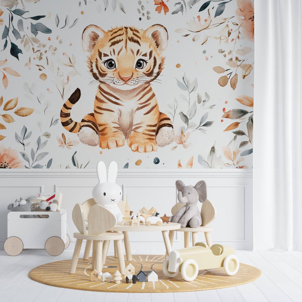 Ce papier peint tigre aquarelle apporte une douce merveille à la chambre du bébé.
