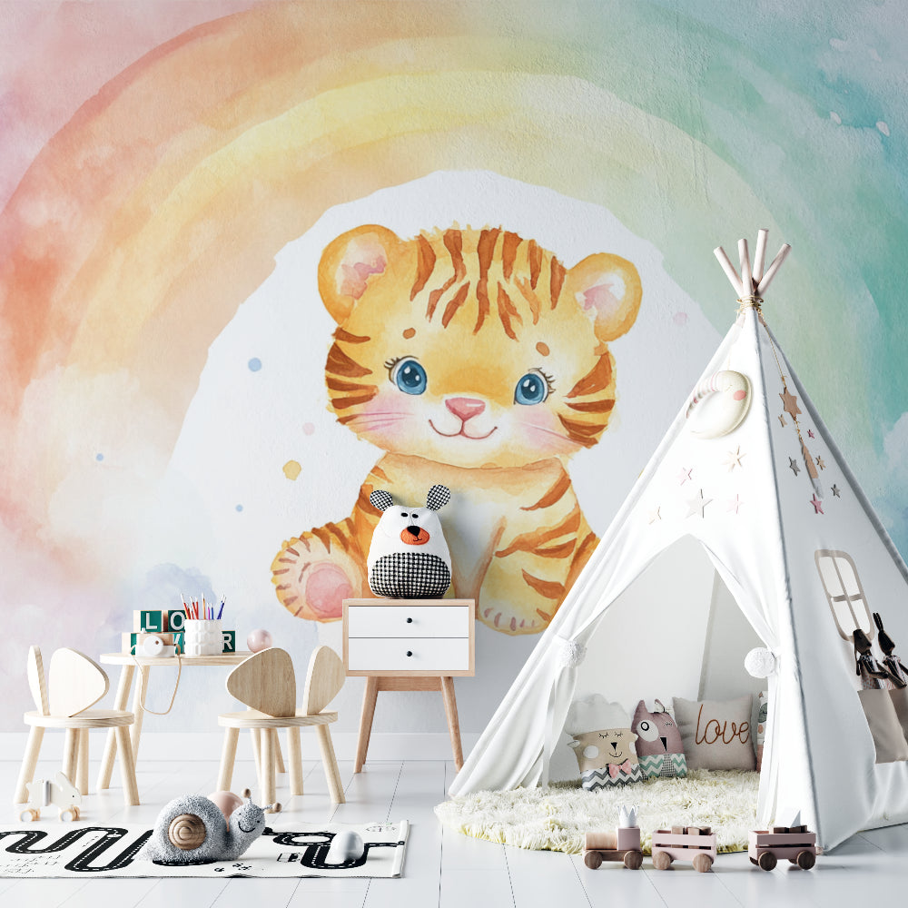 Transformez n'importe quel espace en un sanctuaire de merveille d'enfance avec ce murale tigre arc-en-ciel. La technique délicate de l'aquarelle et la palette pastel rendent ce papier peint tigre pour enfants parfait pour créer un environnement nourrissant qui grandit avec votre enfant. Que ce soit pour décorer une chambre de bébé, une salle de jeux ou une chambre d'enfants, ce design allie ludisme et sophistication artistique en parfaite harmonie.