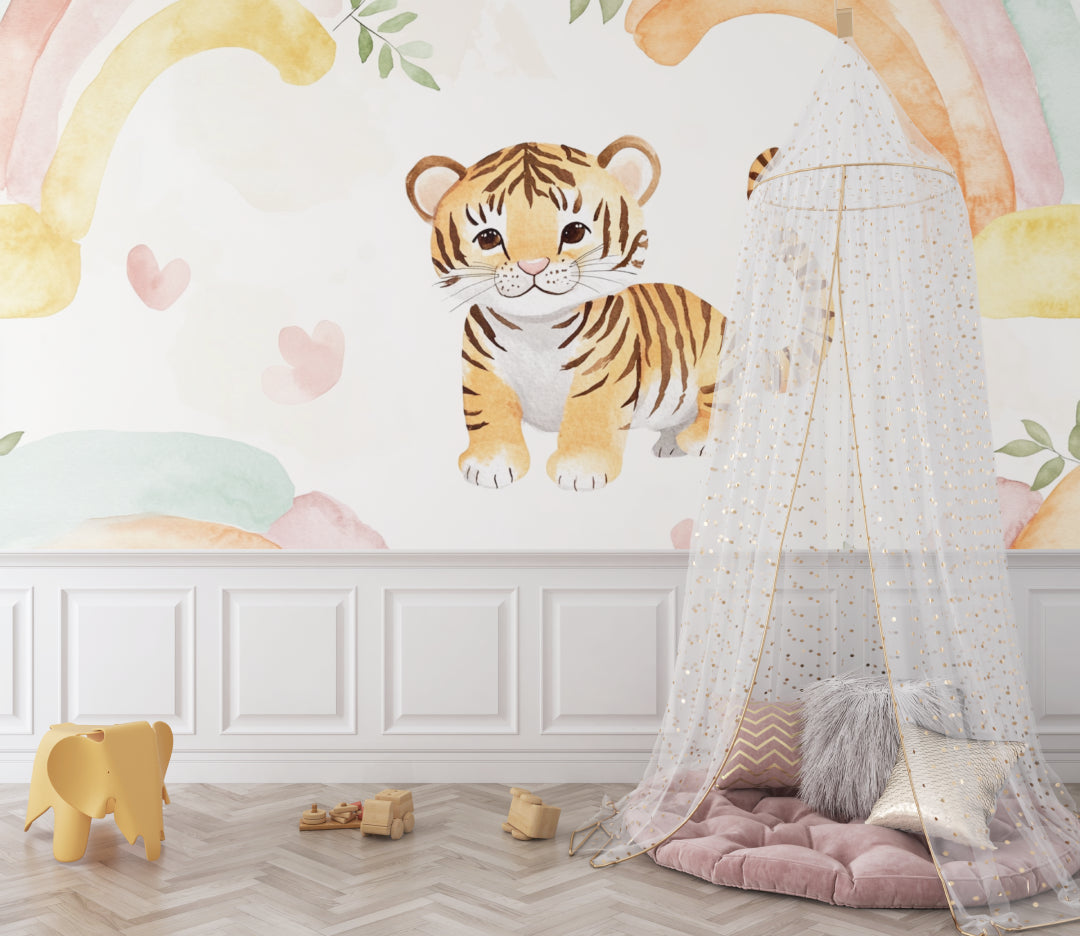 Rendez les matins spéciaux avec ce papier peint mural bébé tigre qui veille sur votre enfant.