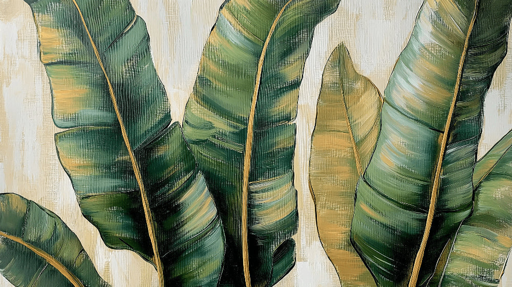 Notre fresque de feuilles de bananier transforme les murs simples en éléments remarquables.