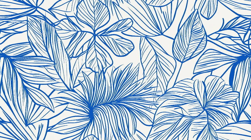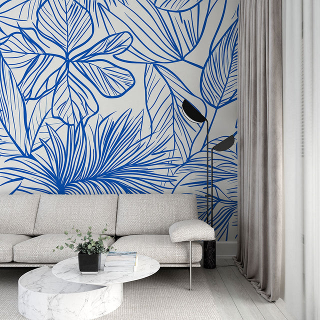 Papier Peint Mural Feuillage Tropical | Motif Ligne Bleue