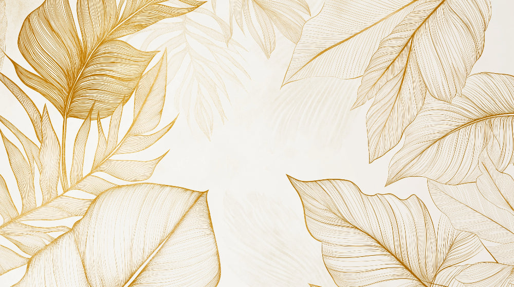 Papier Peint Mural Feuilles Tropicales | Ligne d'Or sur Fond Blanc
