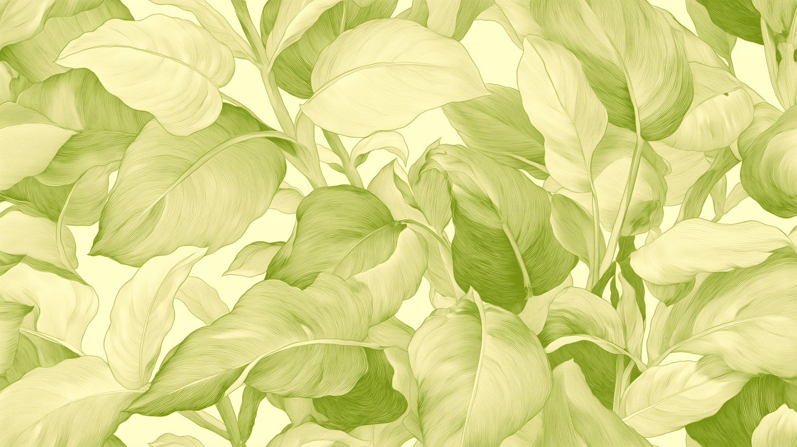 Ce papier peint à feuillage tropical présente une composition saisissante de feuilles surdimensionnées rendues dans des tons vert doux et crème. L'interprétation artistique comprend un travail de ligne finement détaillé qui capture les courbes naturelles et les nervures de chaque feuille majestueuse, créant un papier peint botanique qui allie sophistication moderne et beauté organique. Le dégradé doux entre les teintes vert clair et plus foncé ajoute de la profondeur et de la dimension, tandis que le fond crème offre une qualité éthérée et lumineuse.