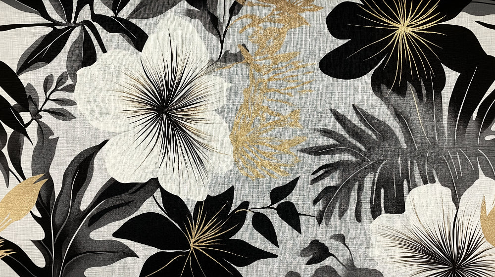 Papier Peint Mural Tropical | Design Floral Noir et Or